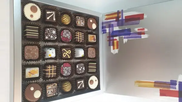 Caja bombones surtidos 16 und. Elaborados con coberturas de origen. Sabores: rosa, violeta, hierbabuena, limon, naranja, romero, vainilla, cafe, nuez moscada, jengibre,piña colada,melocotón, etc.. Elaboracion propia-